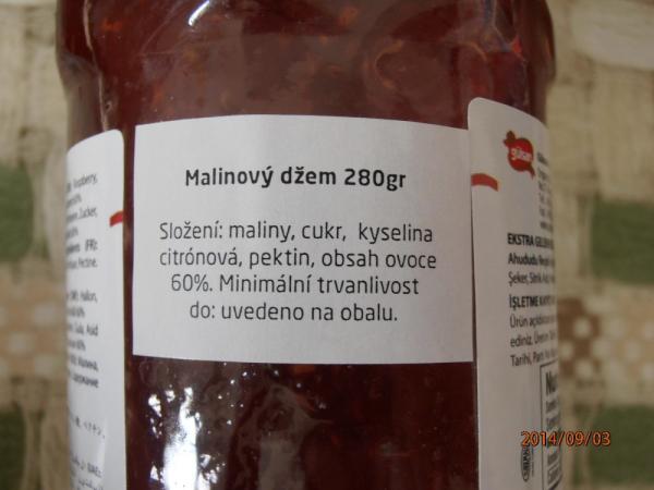 - Gülsan PREMIUM Malinový džem v balení 280 g a s označením data minimální trvanlivosti „03. 2016“. Výrobce na obalu uvedl obsah malin 60%, laboratorní analýza ale prokázala přítomnost malin v množství 14,7% obsahu balení.